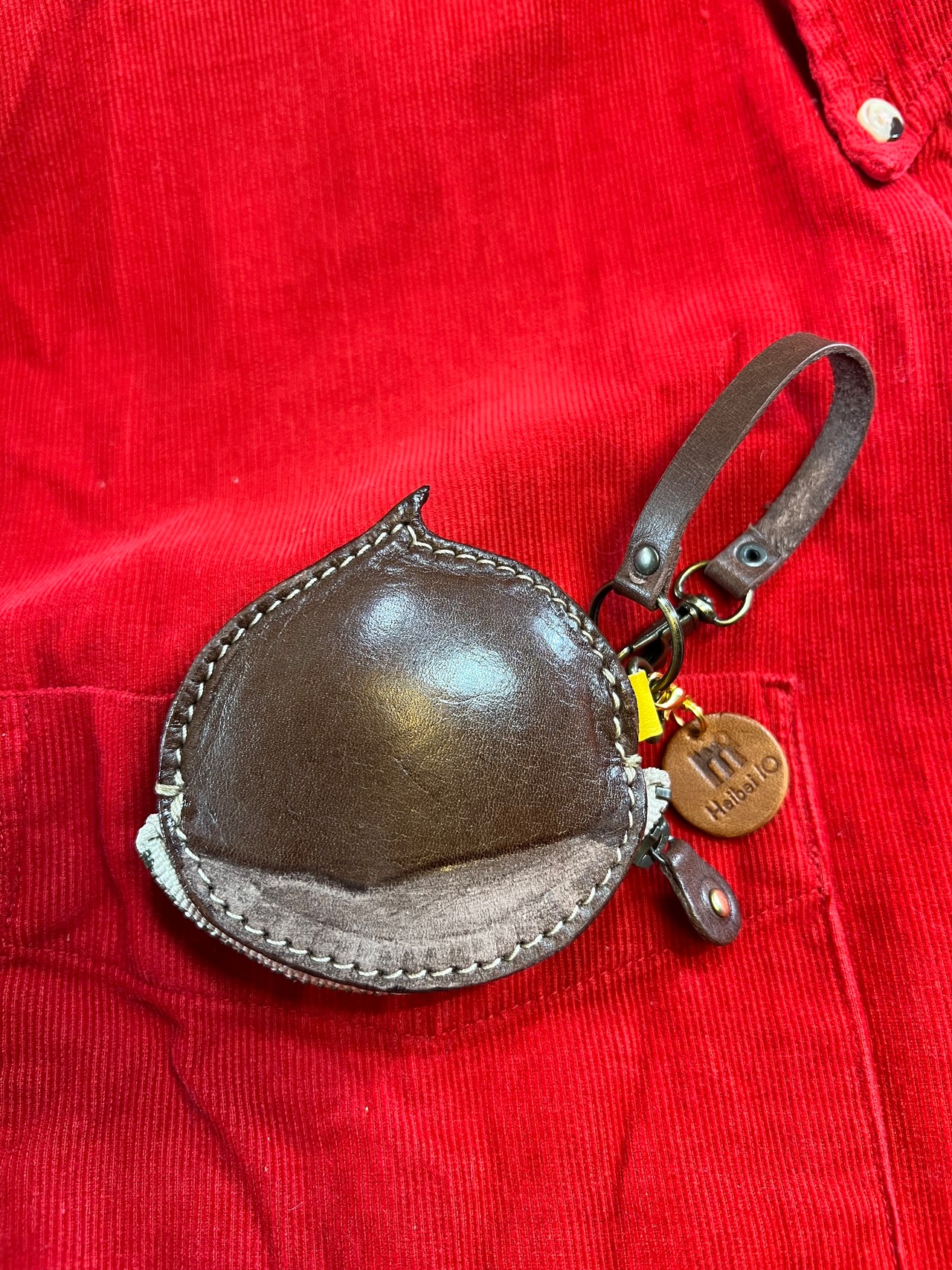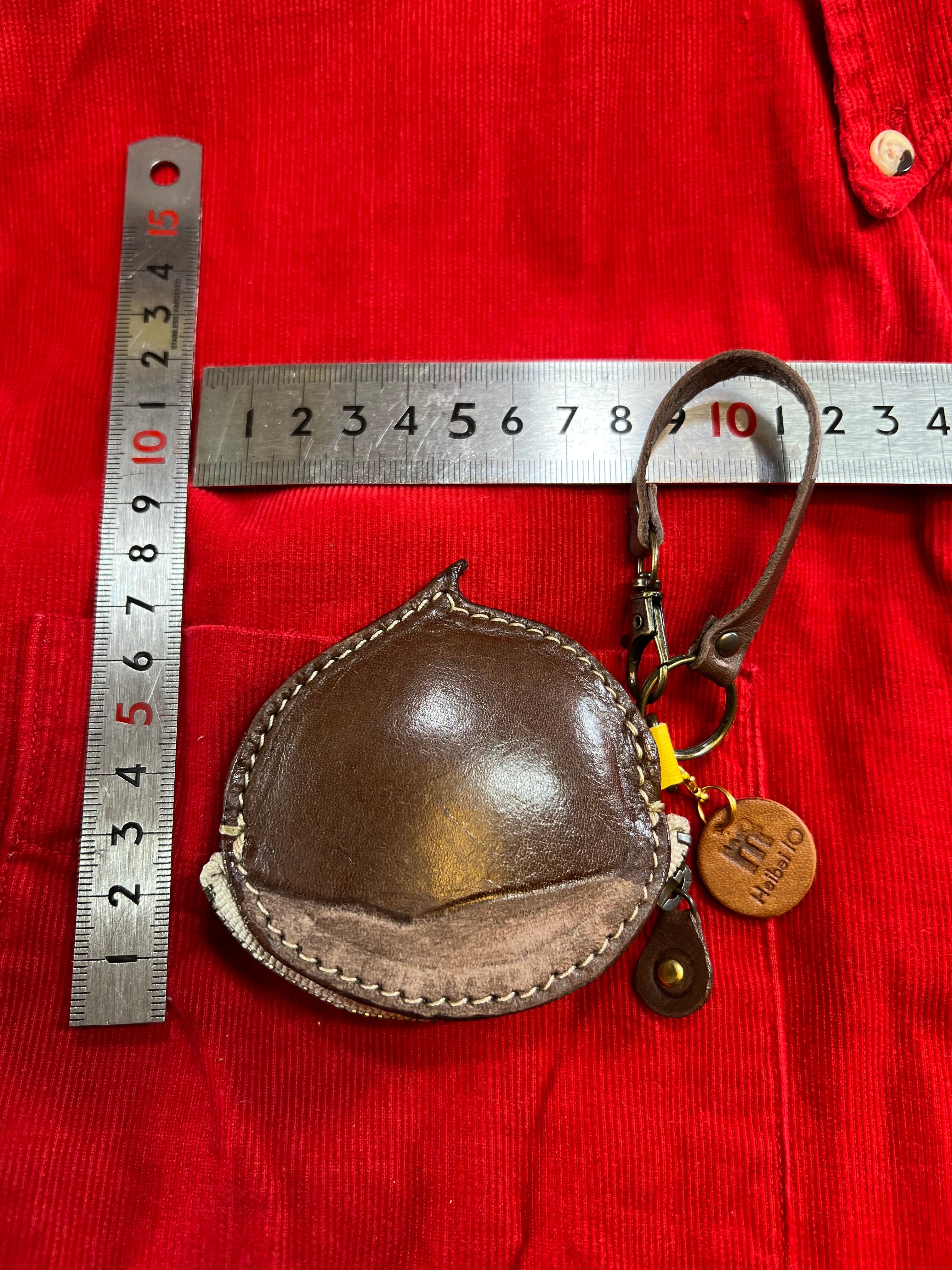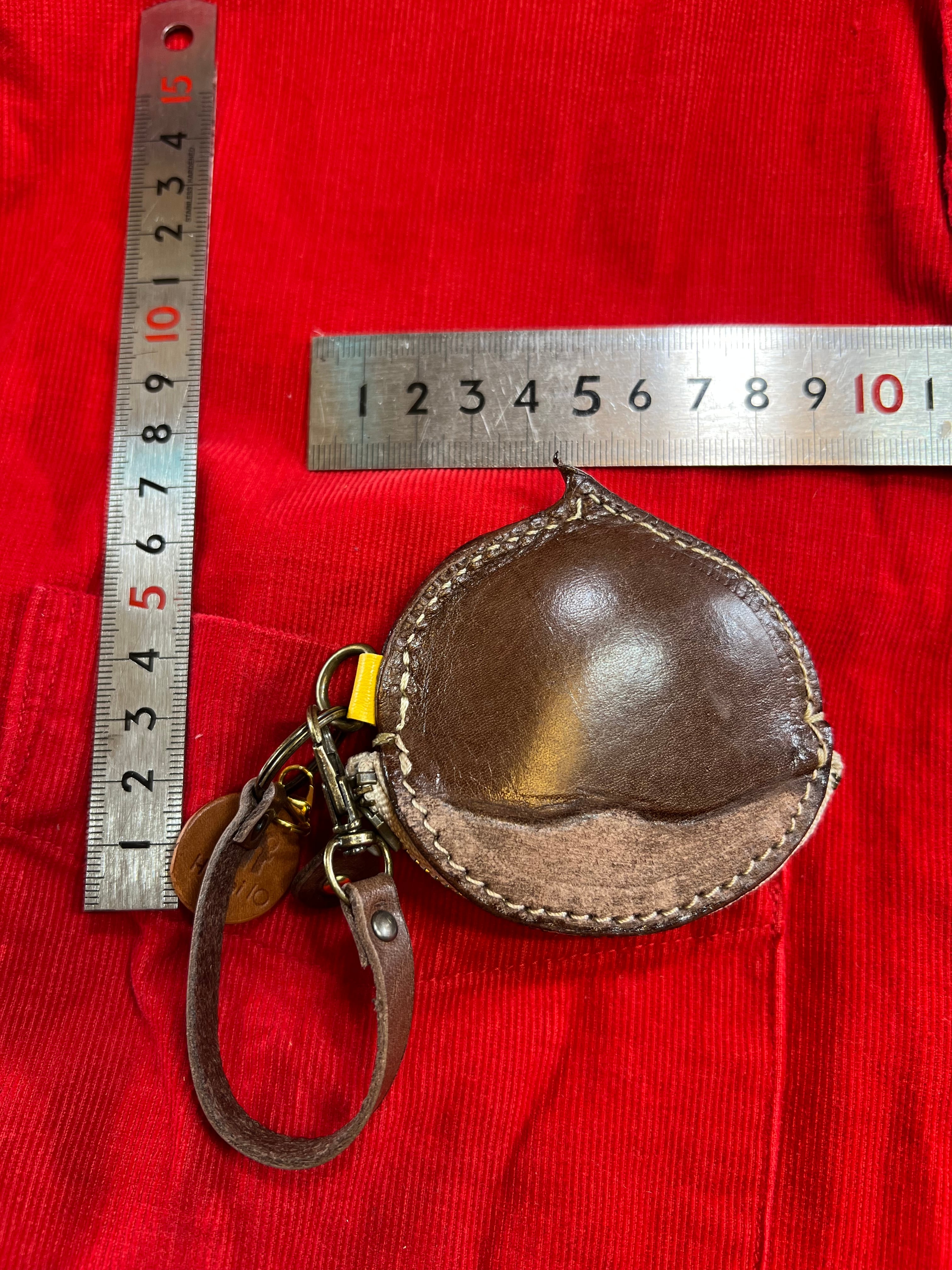 牛オイルレザー(チョコ)約1、8ミリを使って栗らしく作ってます、サイズ縦が約7cm、横が約7cm、ファスナーが10cmYKKを使用してます