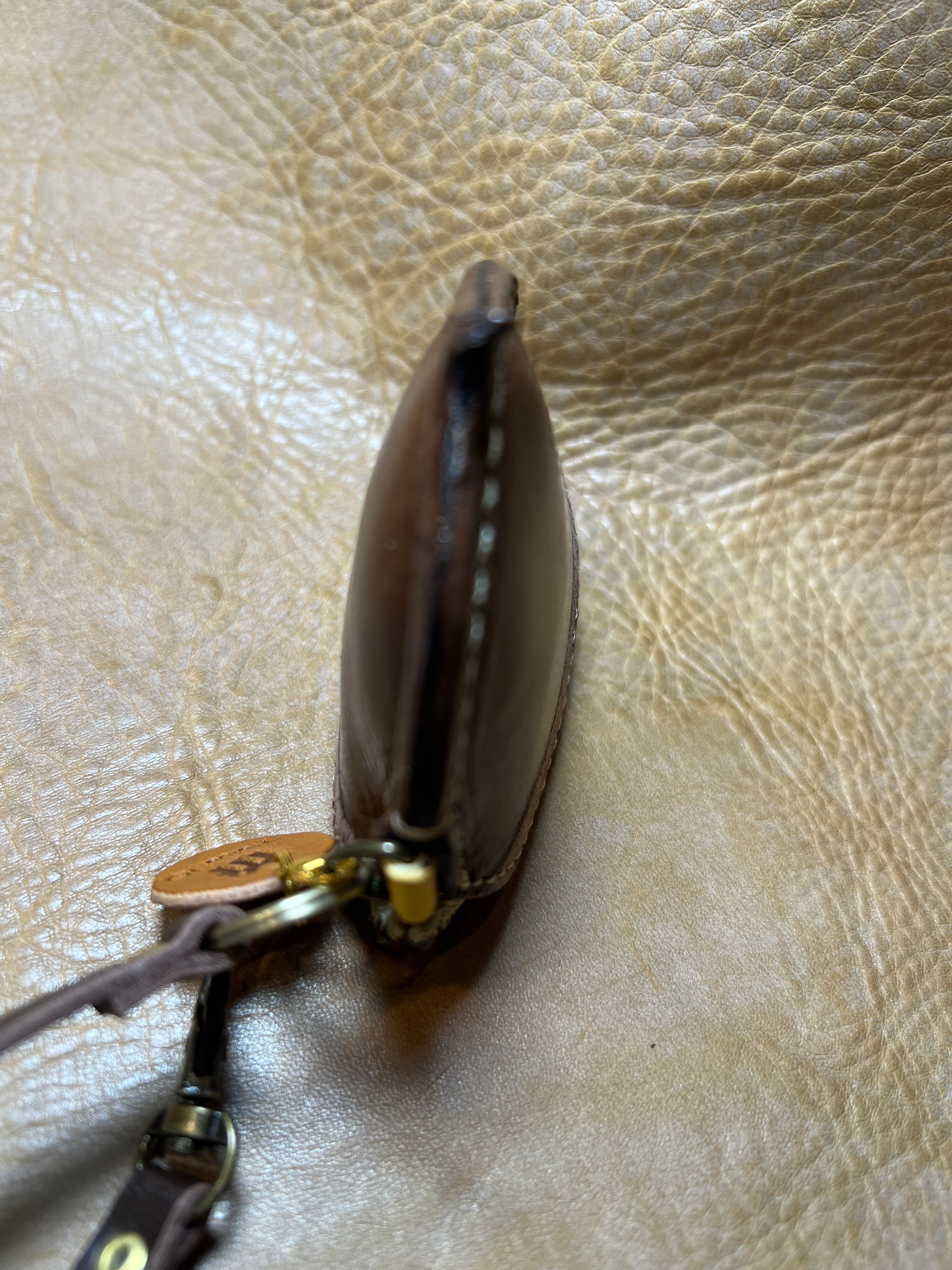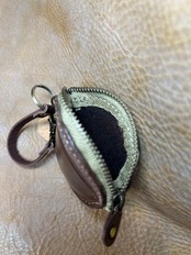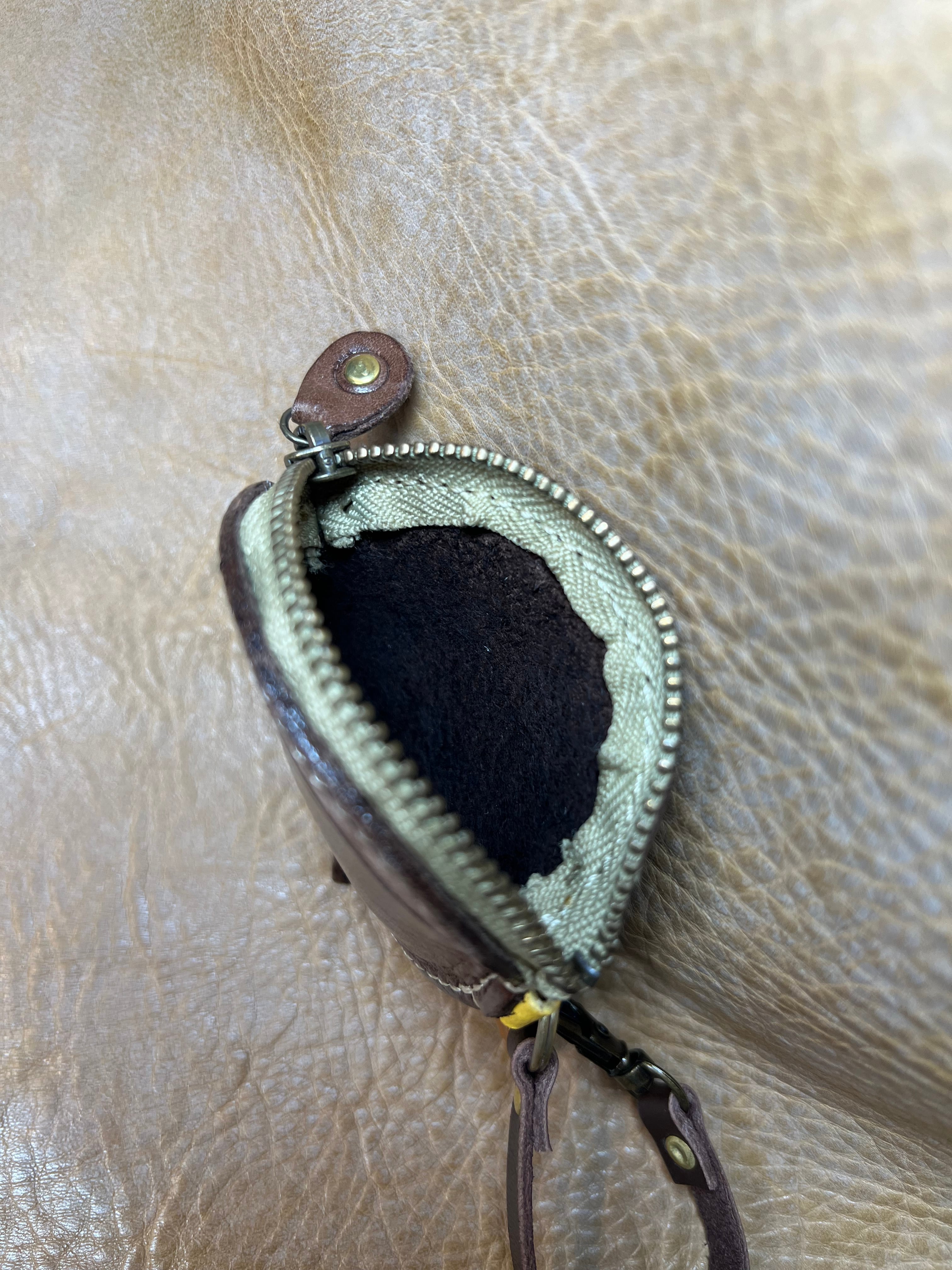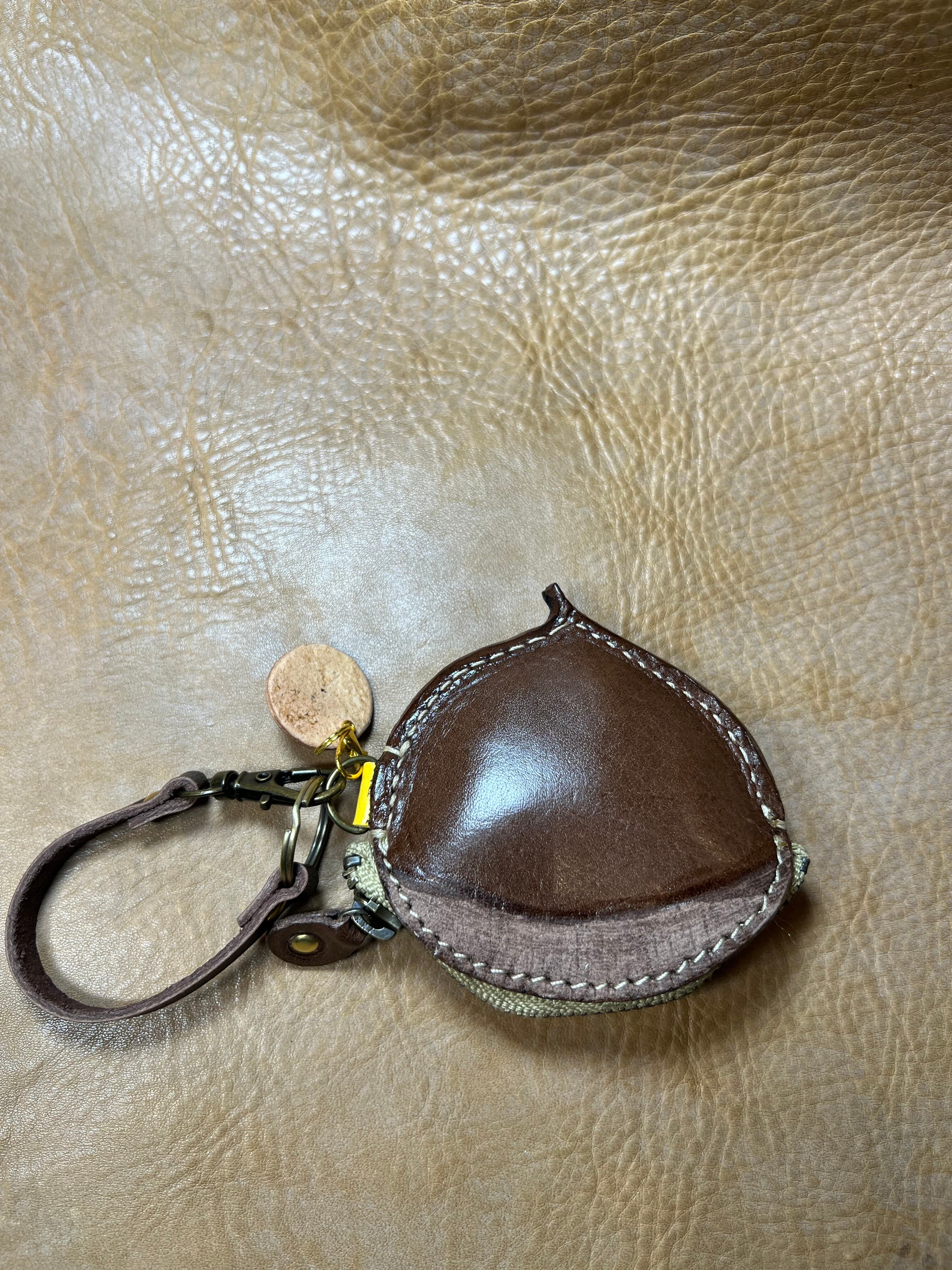 牛オイルレザー(チョコ)約1、8ミリを使って栗らしく作ってます、サイズ縦が約7cm、横が約7cm、ファスナーが10cmYKKを使用してます