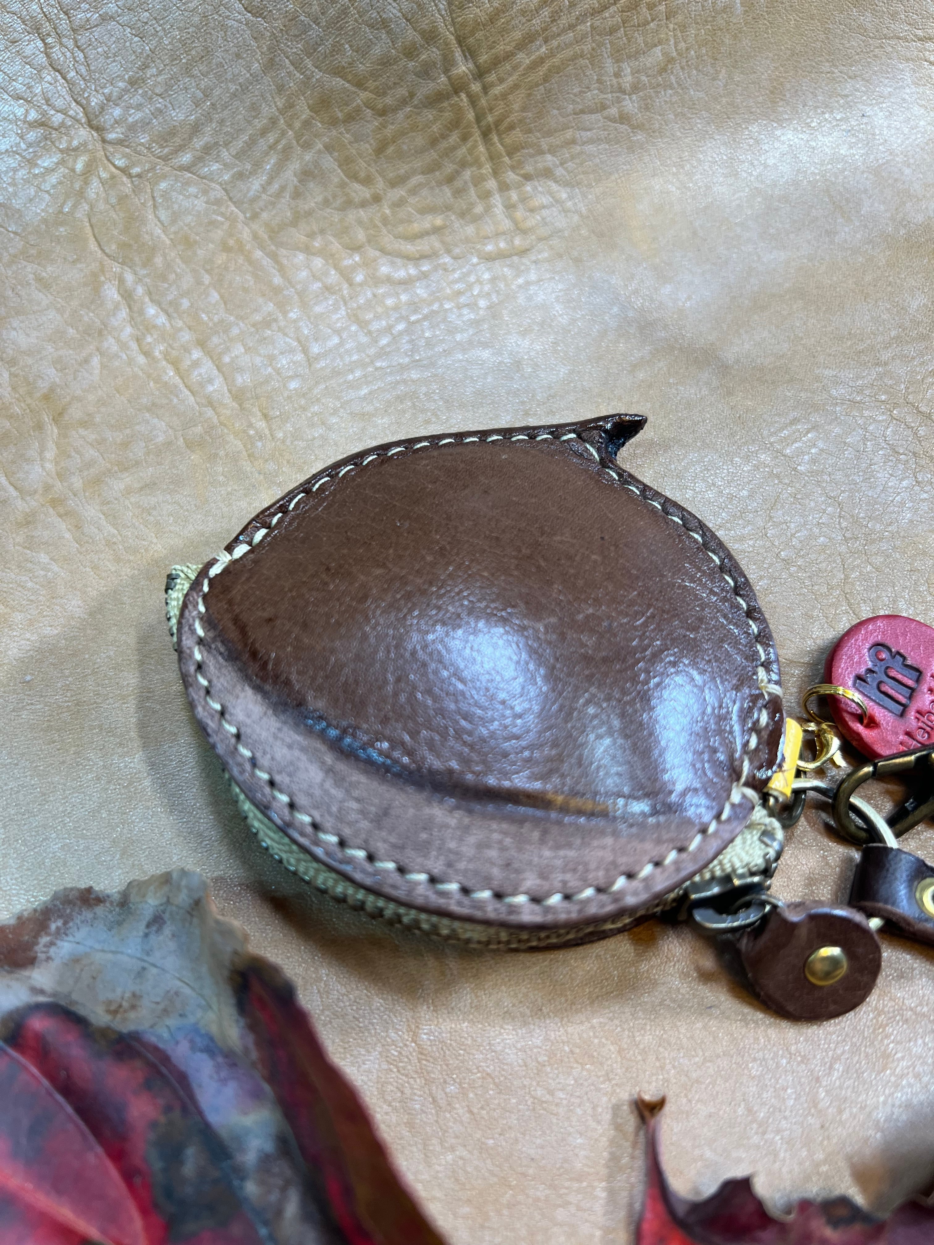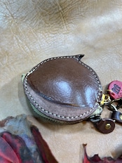 牛オイルレザー(チョコ)約1、8ミリを使って栗らしく作ってます、サイズ縦が約7cm、横が約7cm、ファスナーが10cmYKKを使用してます