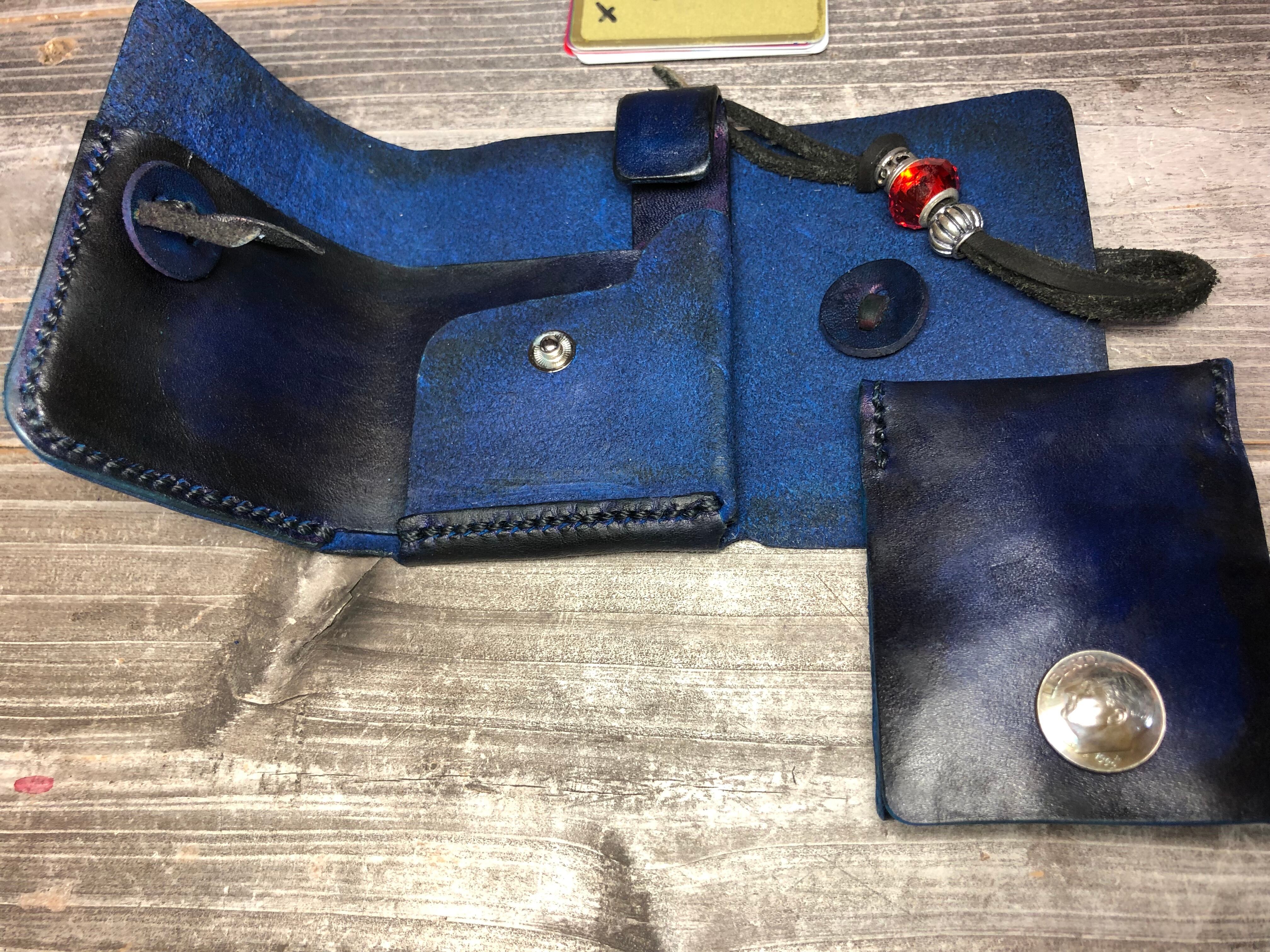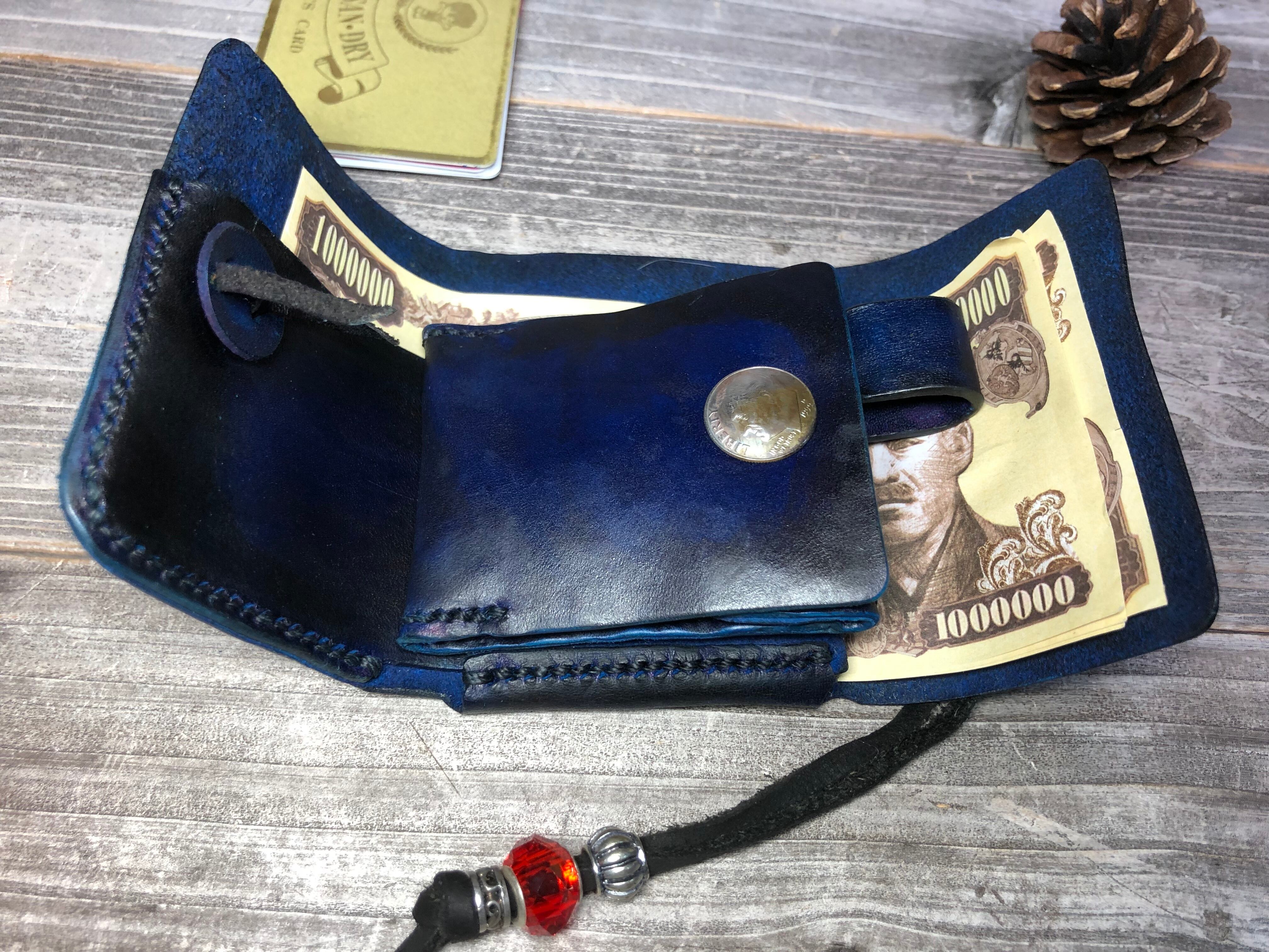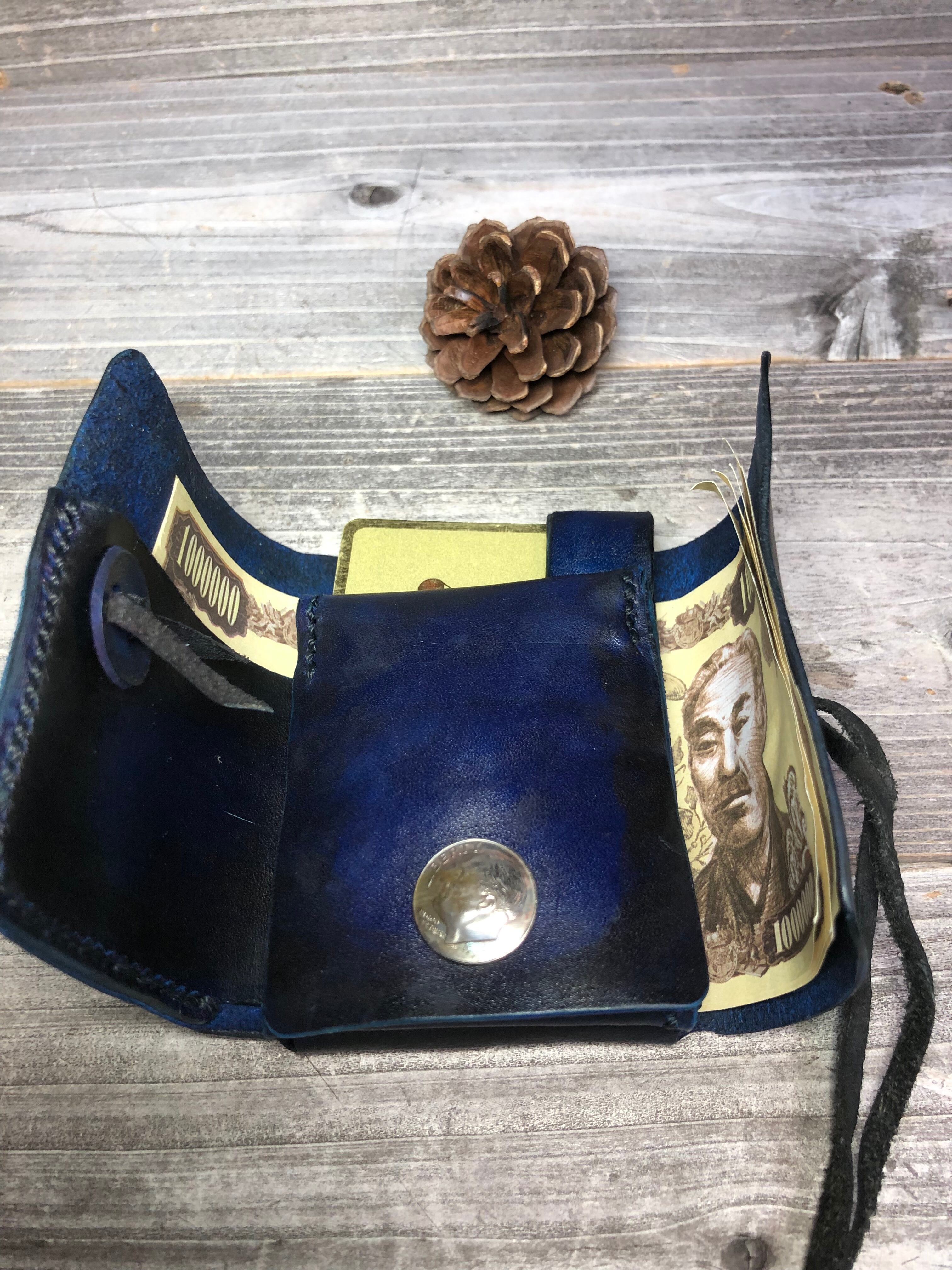 革はツーリングレザー1、2ミリを染料しています横オープン時約19cm、収納時約7cm、縦約9cmです