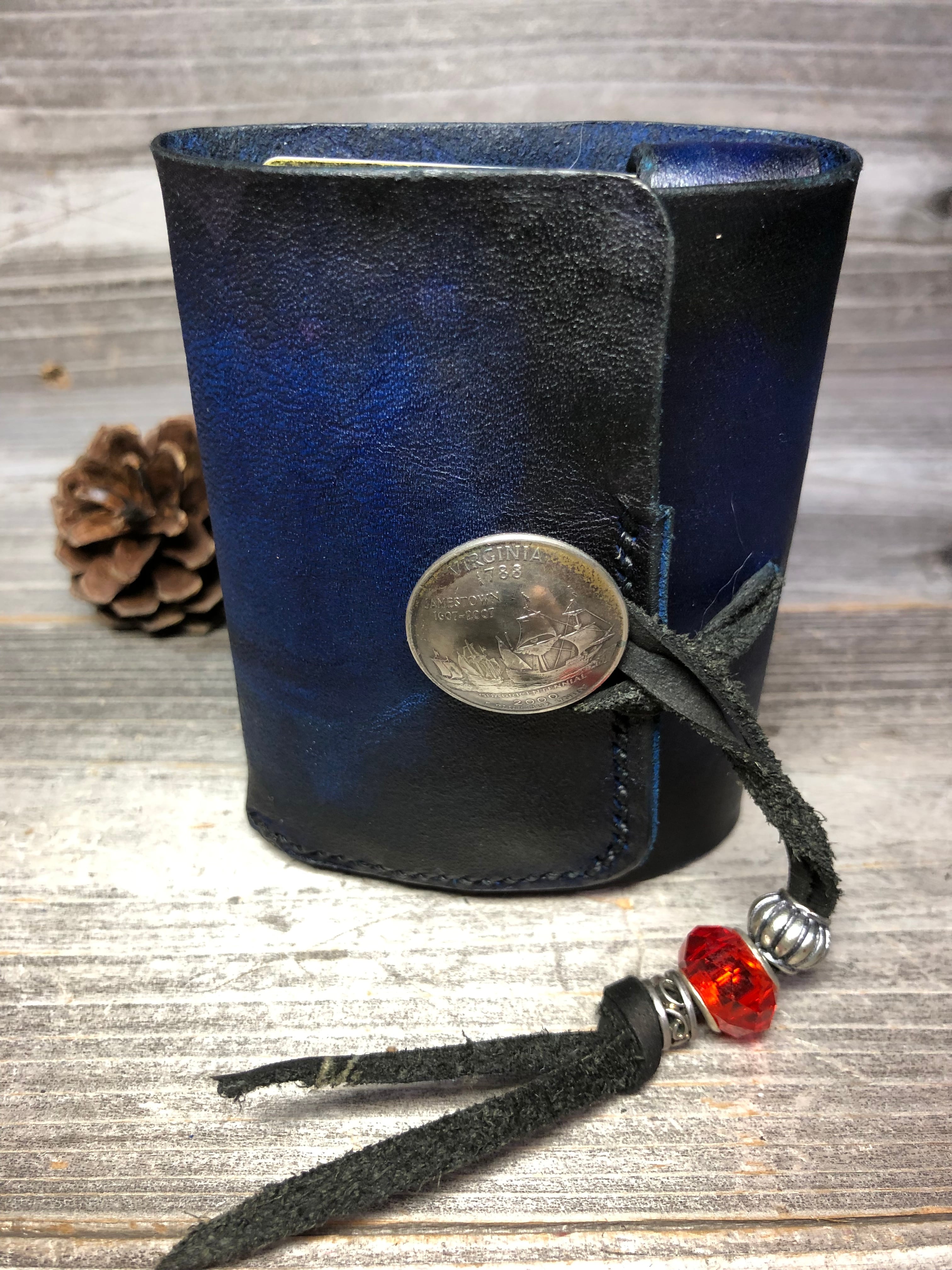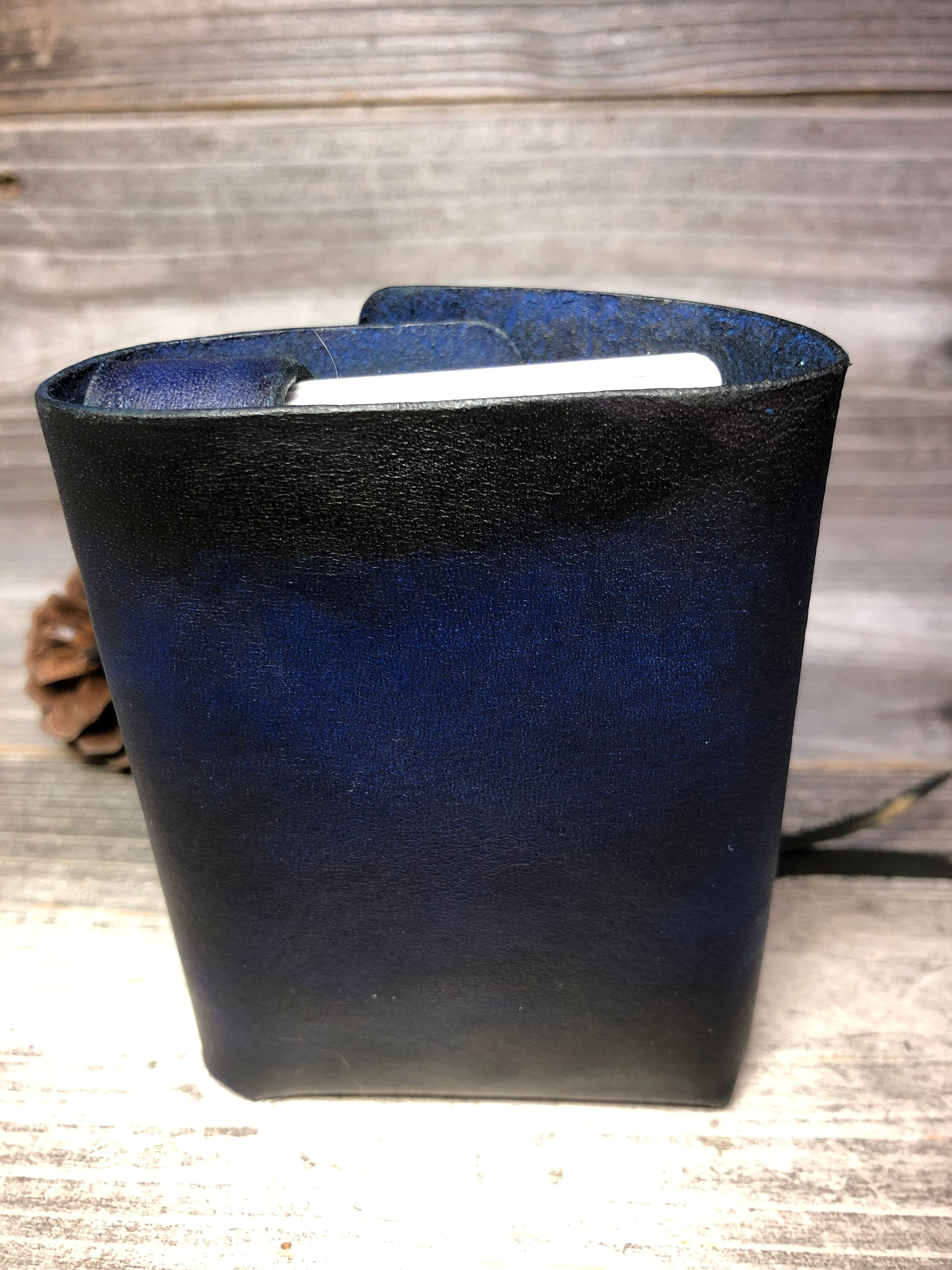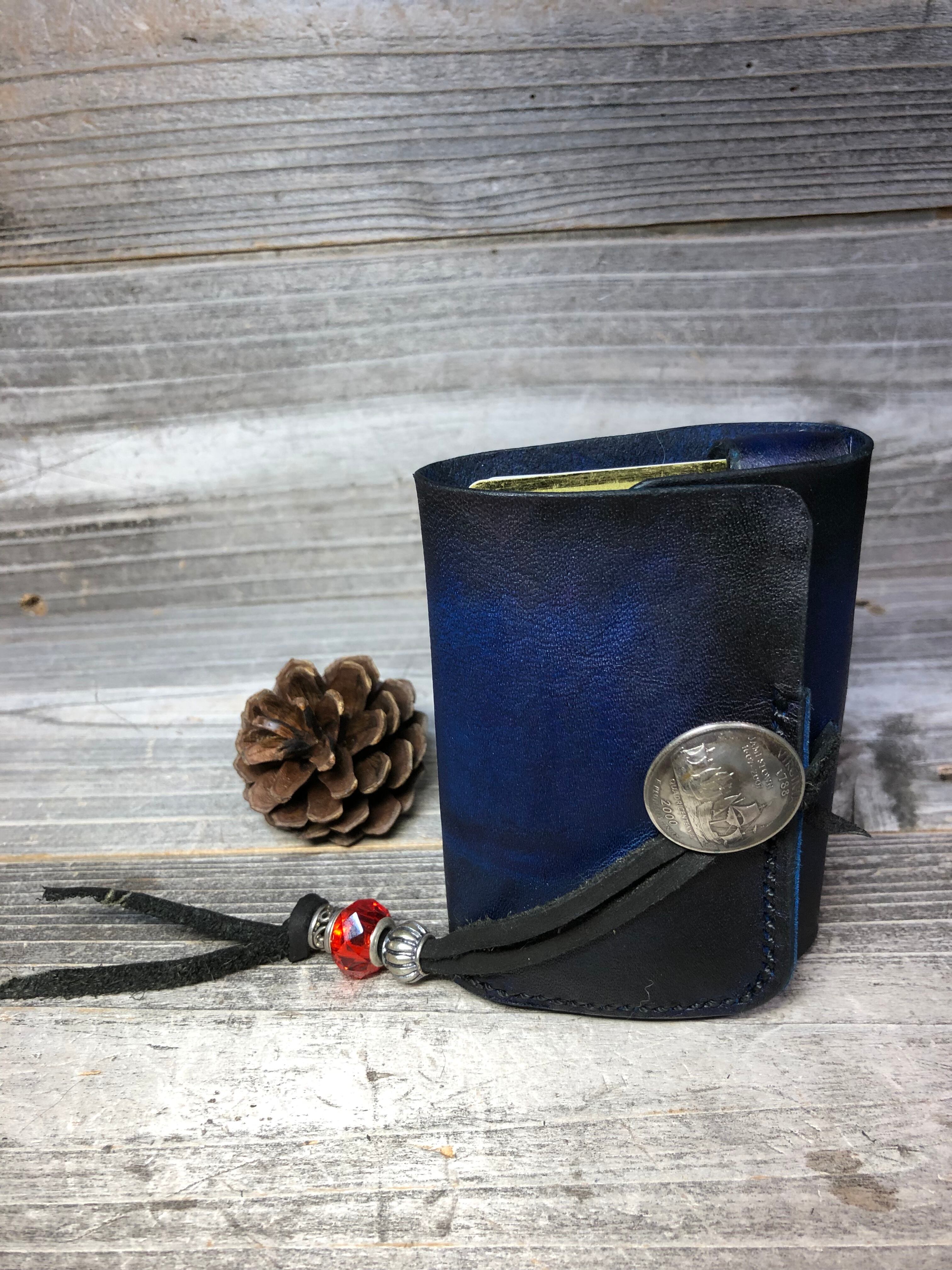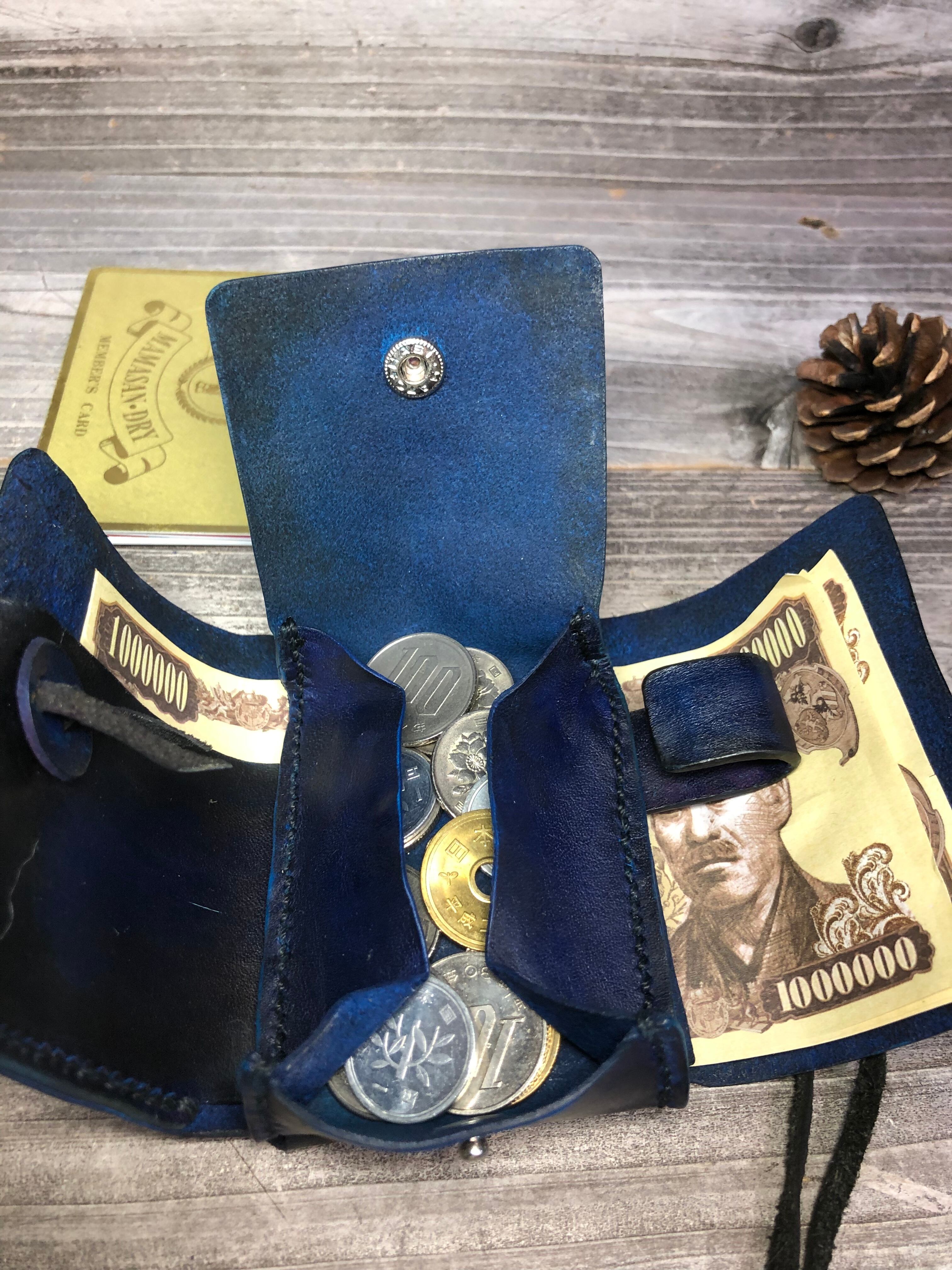 革はツーリングレザー1、2ミリを染料しています横オープン時約19cm、収納時約7cm、縦約9cmです