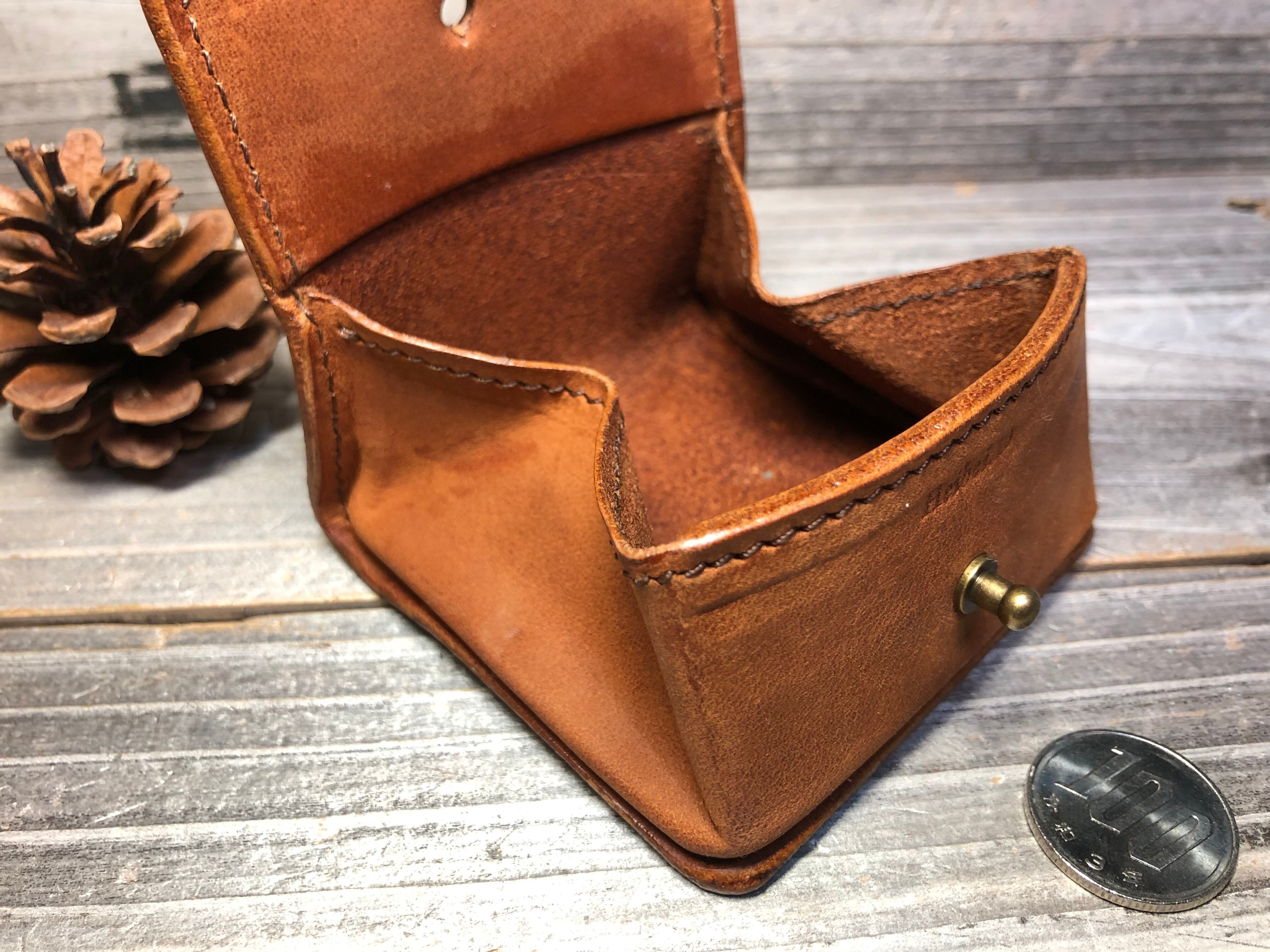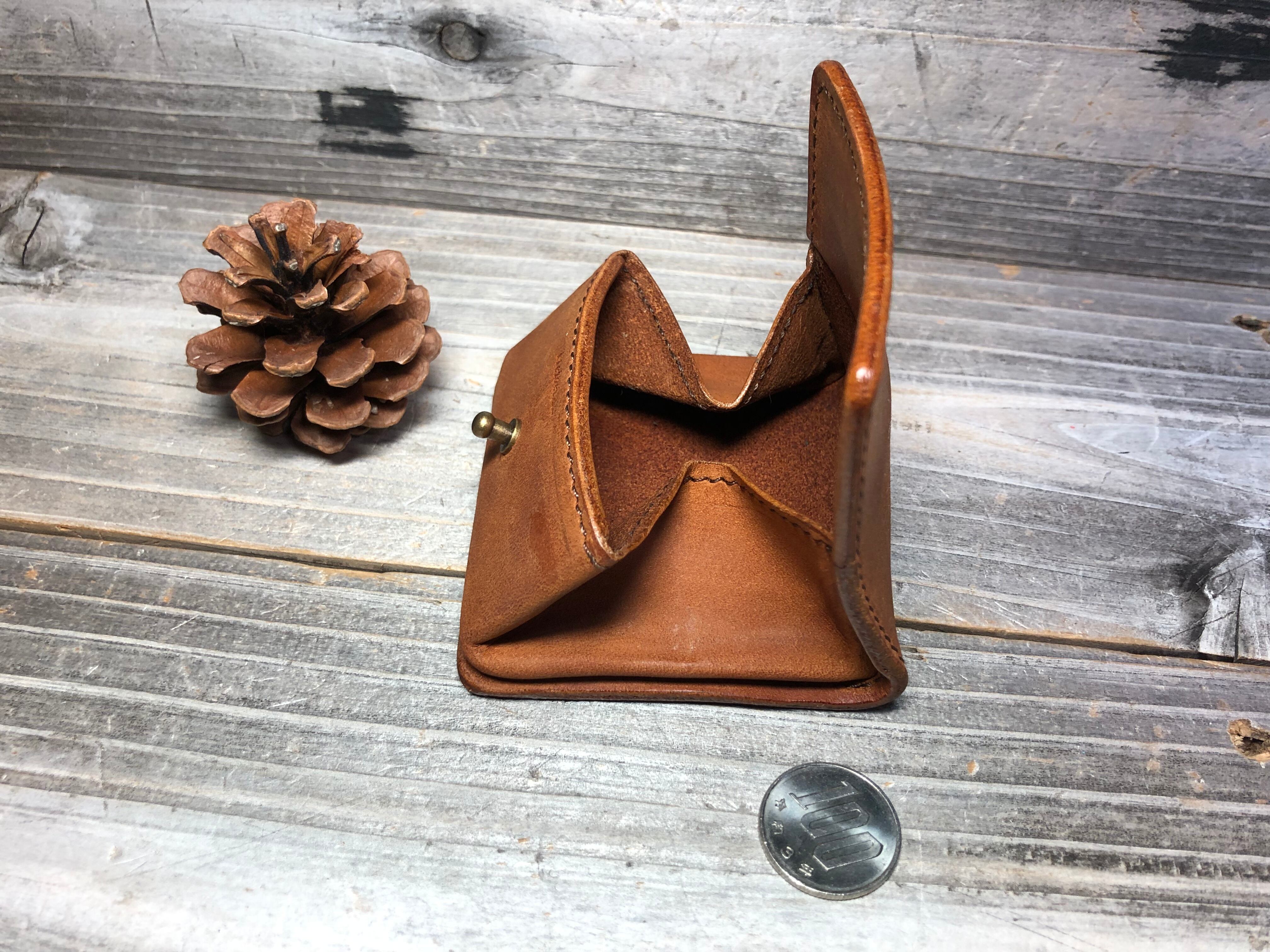 間口が広くて取りやすいザイズです。カードは入りません、お札も折ってお入れできます。革はそれぞれ個性がありますので写真を良くご覧になられご購入下さい、写真が現物です。