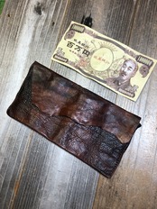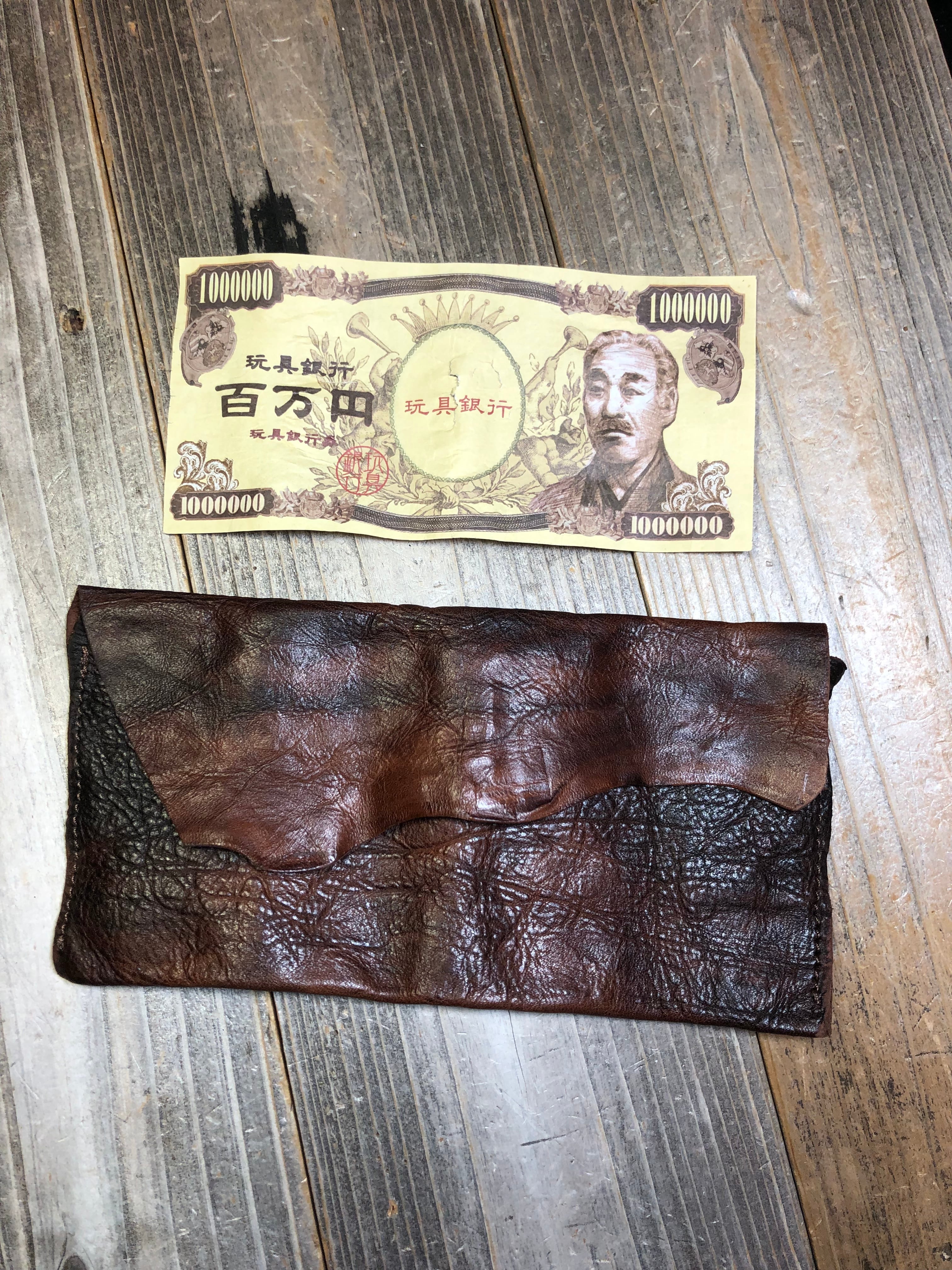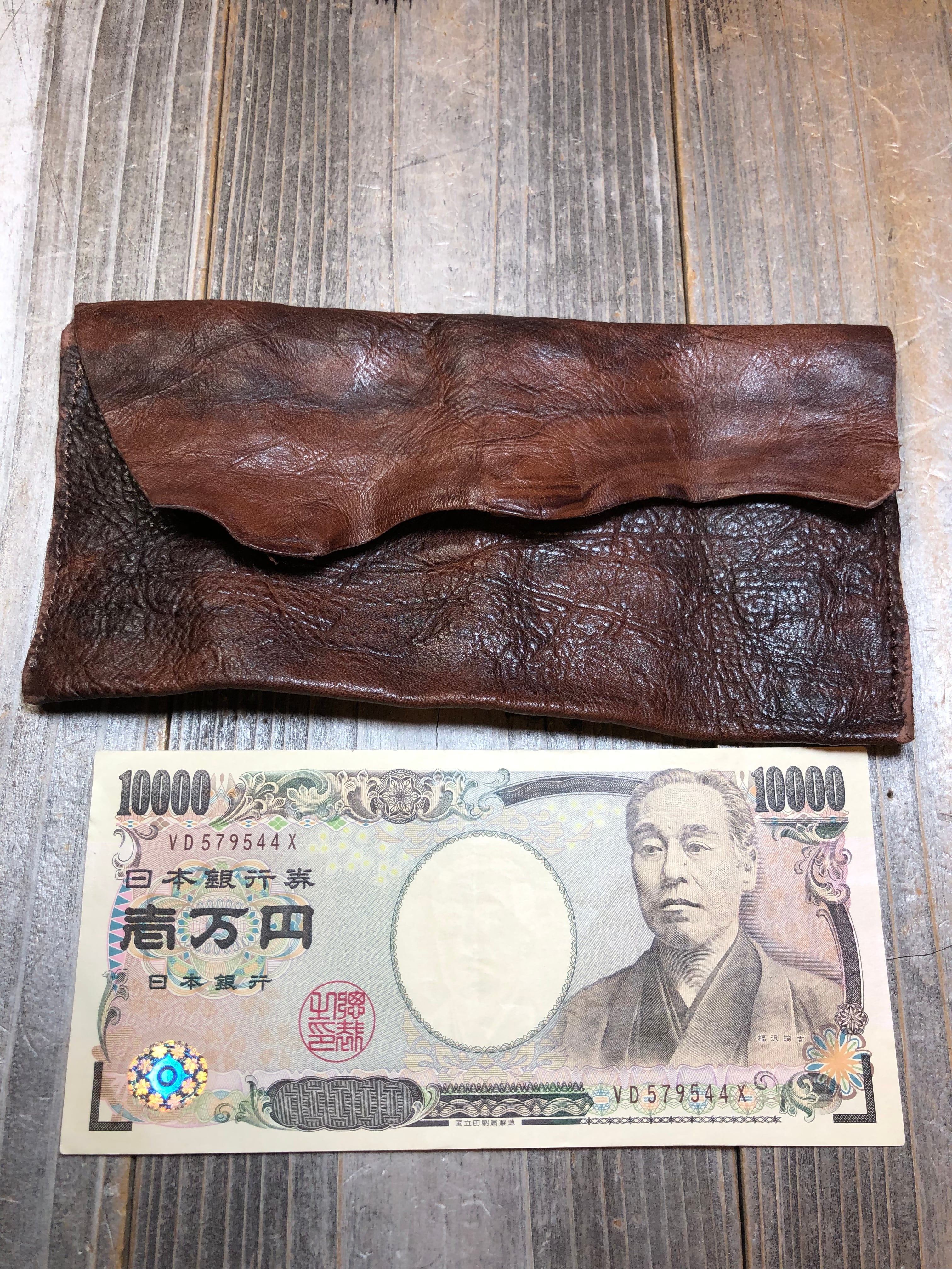 ポニーの革1、2ミリの端っこを使ってワイルドに作っています。ボタンはありません