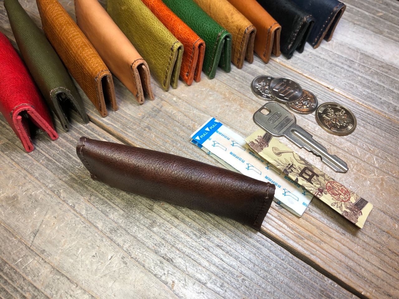 ポーニーレザー赤を使ってお作りしてます。