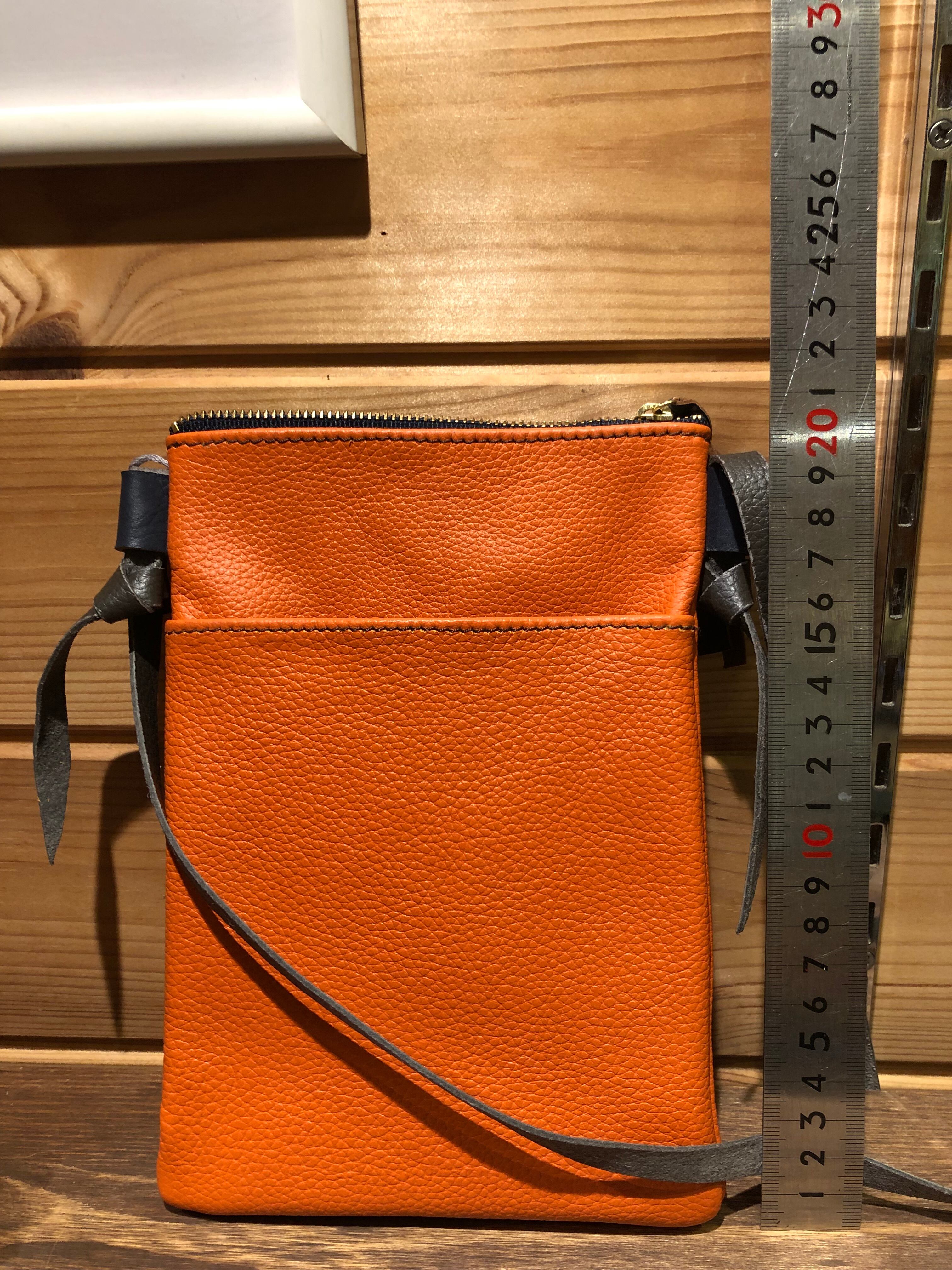 ストラップは牛革グレー1枚革から作ってます大柄の男性でも大丈夫です